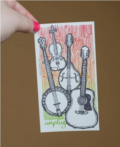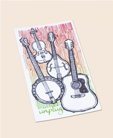 This musically inspired sticker will bring all the down beat, blues picking vibes into your soul. Get in tune with the stringed beauties on this cool guitar sticker that features hand-drawn acoustic instruments and the word: Unplug. One of our fun music stickers at Soul Flower! Die Cut. Outdoor safe vinyl sticker. Made in the USA. 3.4 x 6.2 inches.