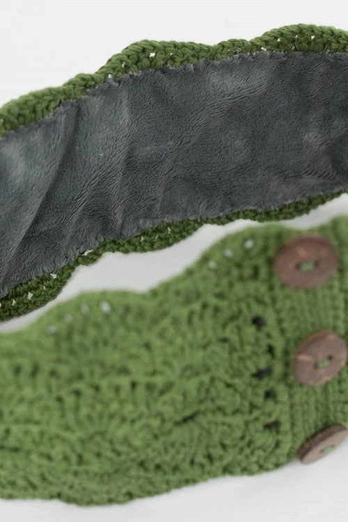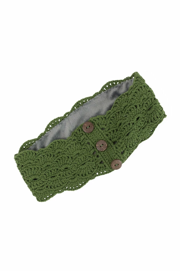 - Cotton headband in green with fleece lining and 2 coconut shell buttons