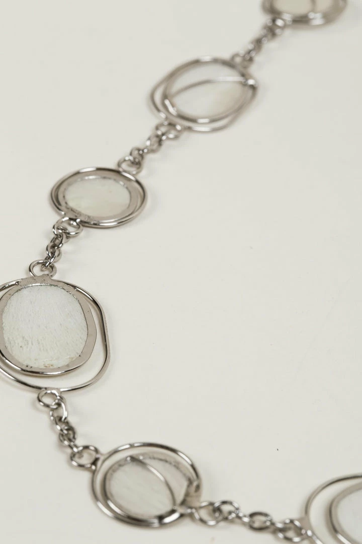 - Silver-plated brass chain with circle- and oval-shaped smoked capiz in silver-plated brass binding