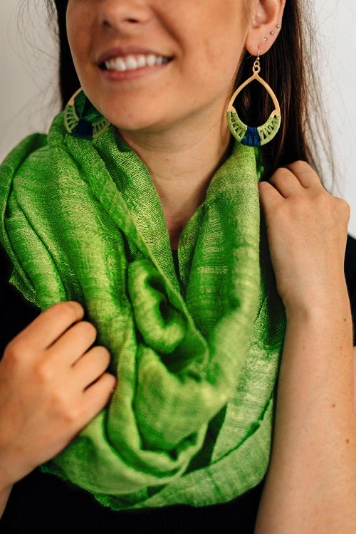 The trendsetting Crisscross Thread Earrings from India feature green and blue cotton thread. With new opportunities to earn sustainable income, artisans working with our fair trade partner Tara Projects are transforming their lives and their communities. A beautiful Global Fair Trade gift.