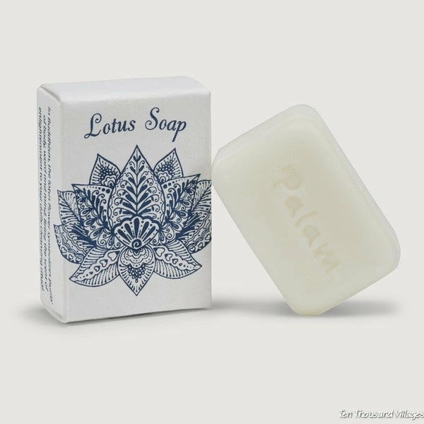Enjoy the natural pleasure of our lotus-scented soap, handmade by artisans of Palam Rural Centre in Tamil Nadu, India. Palam employs members of the Harijan (“untouchables”) caste, and provides health care and schooling for artisan families. All our soaps made in India use palm oil grown on local plantations. This palm oil provides work to local farmers and does not contribute to deforestation. 3.2 oz soap with box, 3″ x 2″ x 1″ A Global Fair Trade gift.