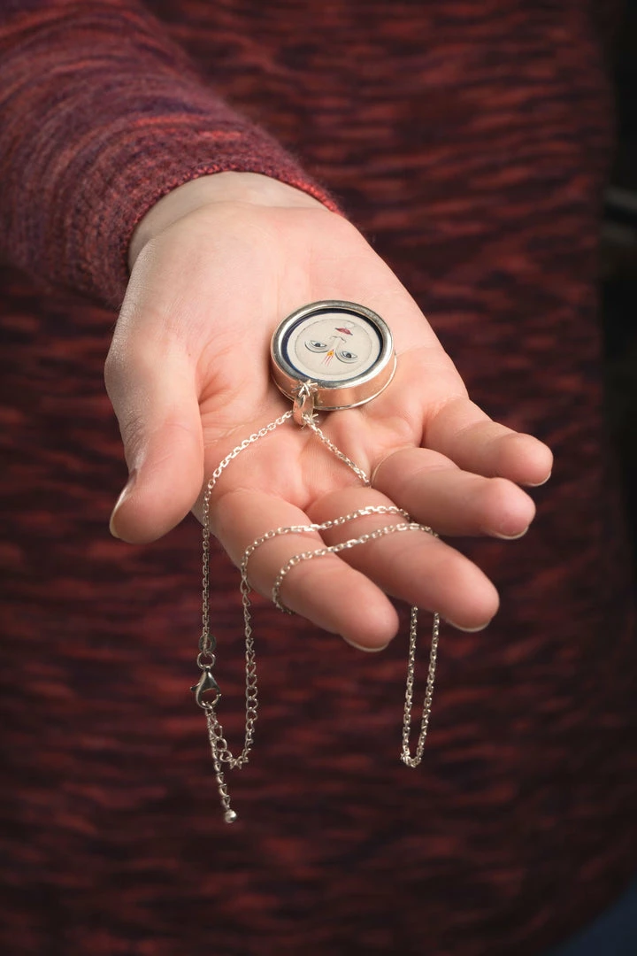 Give this necklace to the person who is your sun and moon. The hand-painted sun and moon and faces on this double-sided pendant are created a style of miniature painting developed hundreds of years ago in Rajasthan, India, often used to depict gods and goddesses. Paintings were meant to be kept in boxes and passed from hand-to-hand, just as you might share this necklace as a gift. A beautiful Global Fair Trade gift.