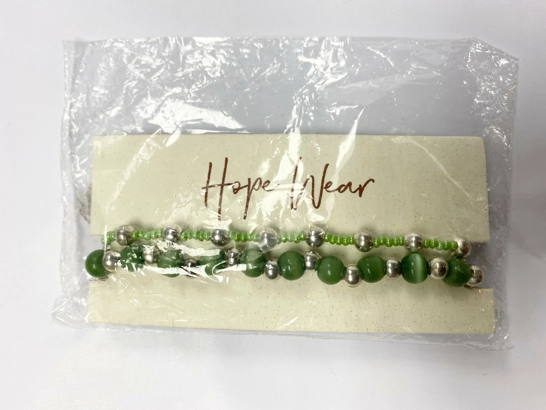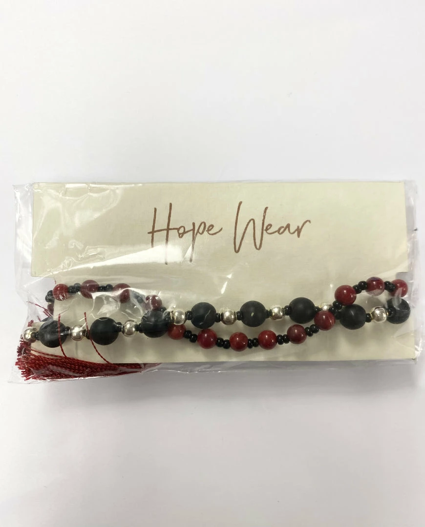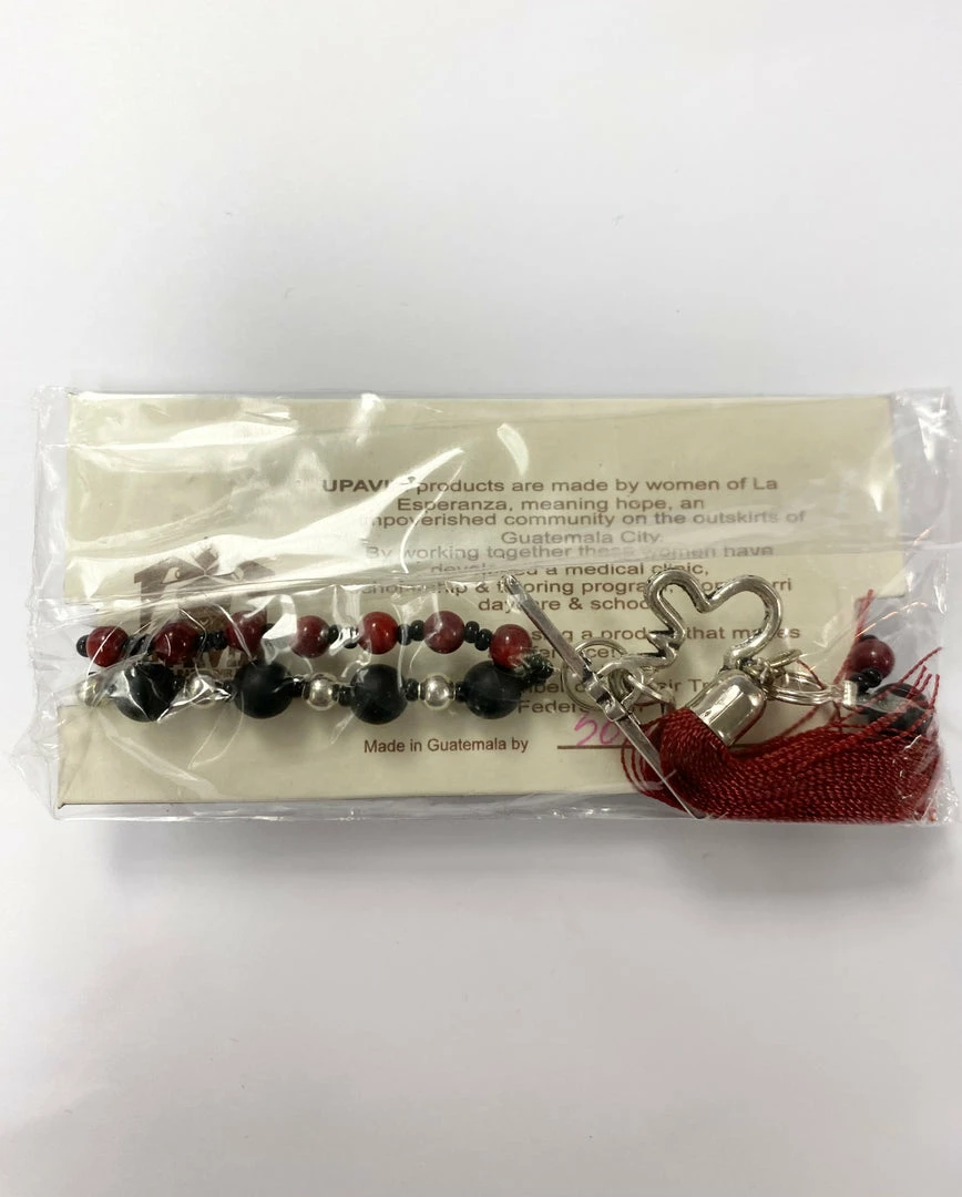 A lovely beaded double bracelet that has two strands in one and capped off with a fun tassel. One strand has larger beads and the second has small coordinating beads. Both strands come together with a decorative toggle clasp. The bracelet measures 7 1/2 ” L (7 ” when closed). Handmade in Guatemala by the artisans at UPAVIM. A beautiful Global Fair Trade gift.
