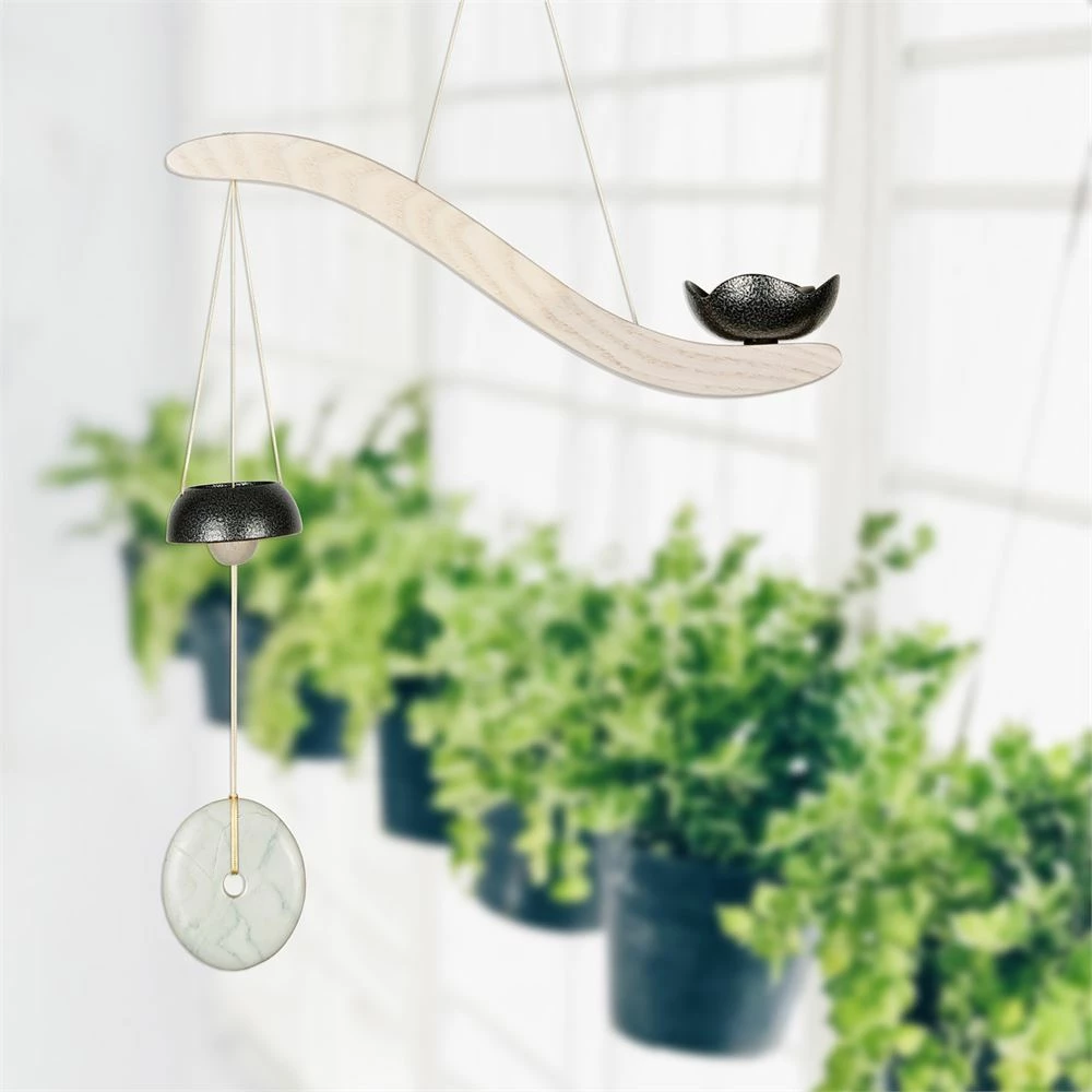 Equally suited to hang indoors or out, itโs the perfect addition to a cottage, garden, man cave or she shed. Aromatherapy oils are not included. Dimensions: 18 in. Overall Length, White wash finish ash wood, antiqued silver steel bell, ceramic aroma oil diffuser.