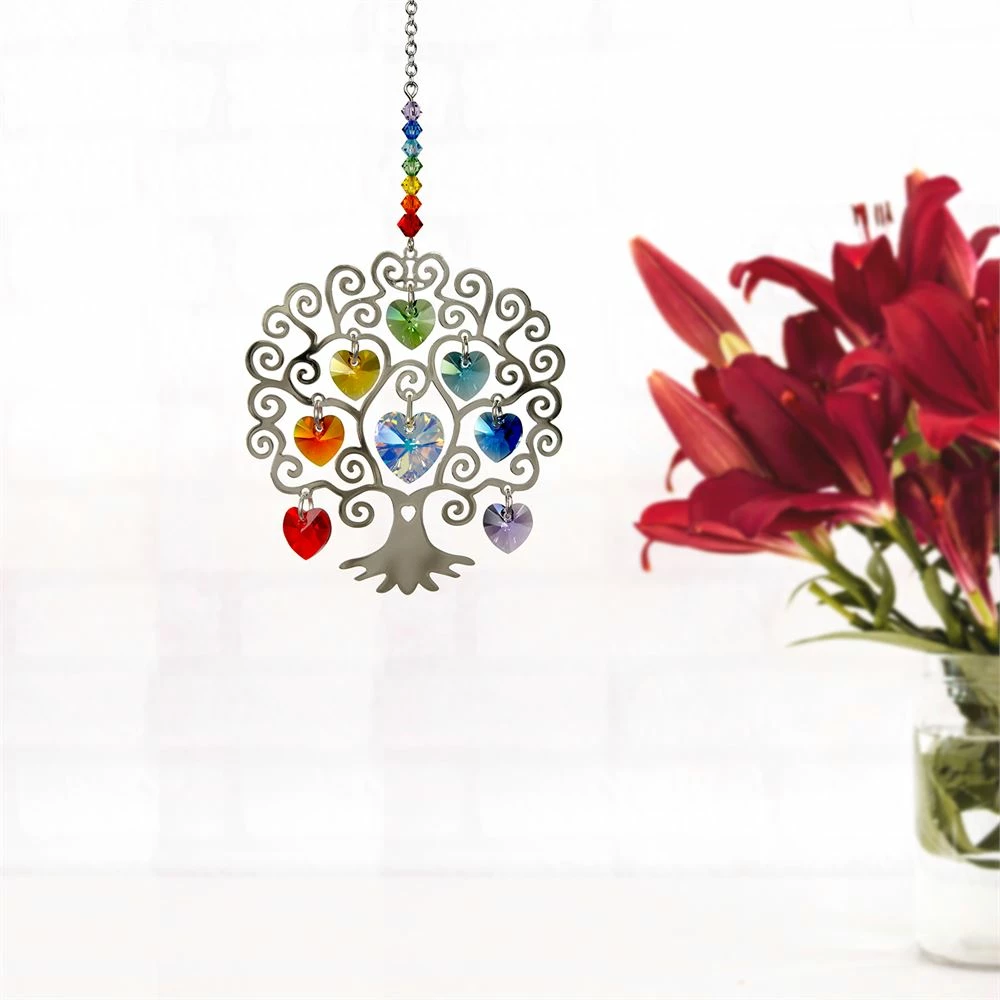 This silver Tree of Life is embellished with crystals from Swarovski®. A larger central crystal heart is surrounded by a rainbow of smaller crystal hearts. All are faceted for maximum shimmer and shine. This is a stunning beautiful gift.