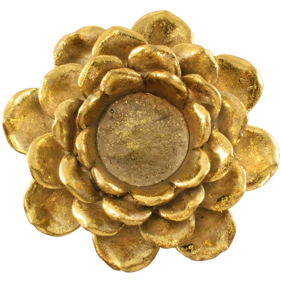 Lotus Tea Light Holder. Made of poly-resin. An elegant accent for any occasion. Gold color.